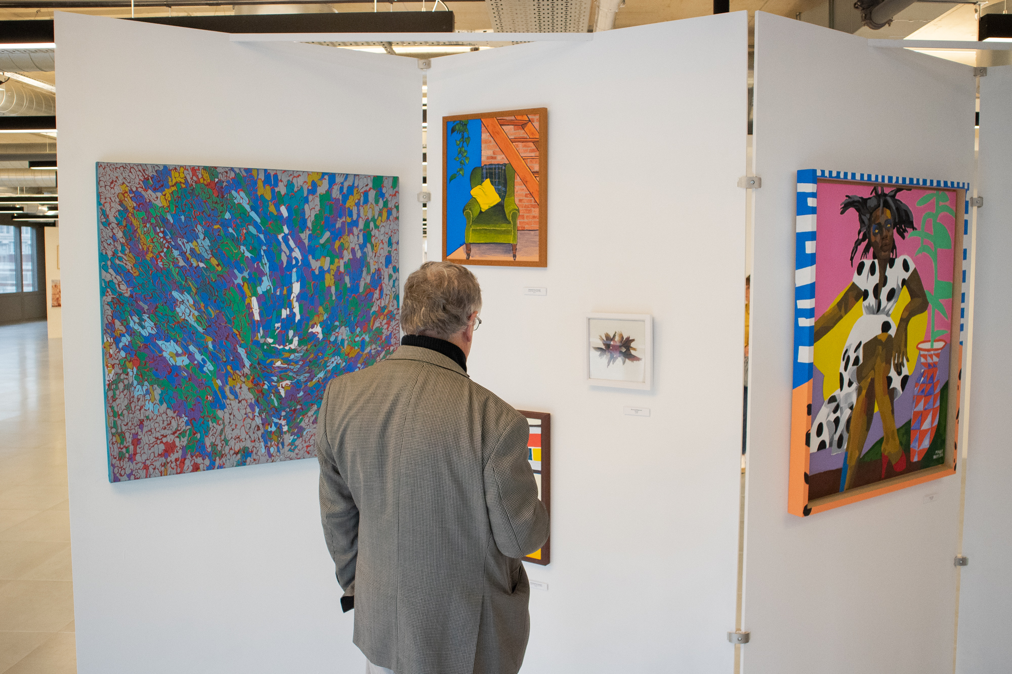 This open call exhibition championed Manchester artists and connected them with local audiences, featuring over 40 works across painting, sculpture, textiles and photography. Many pieces sold, including one shipped to an interior designer in New York.